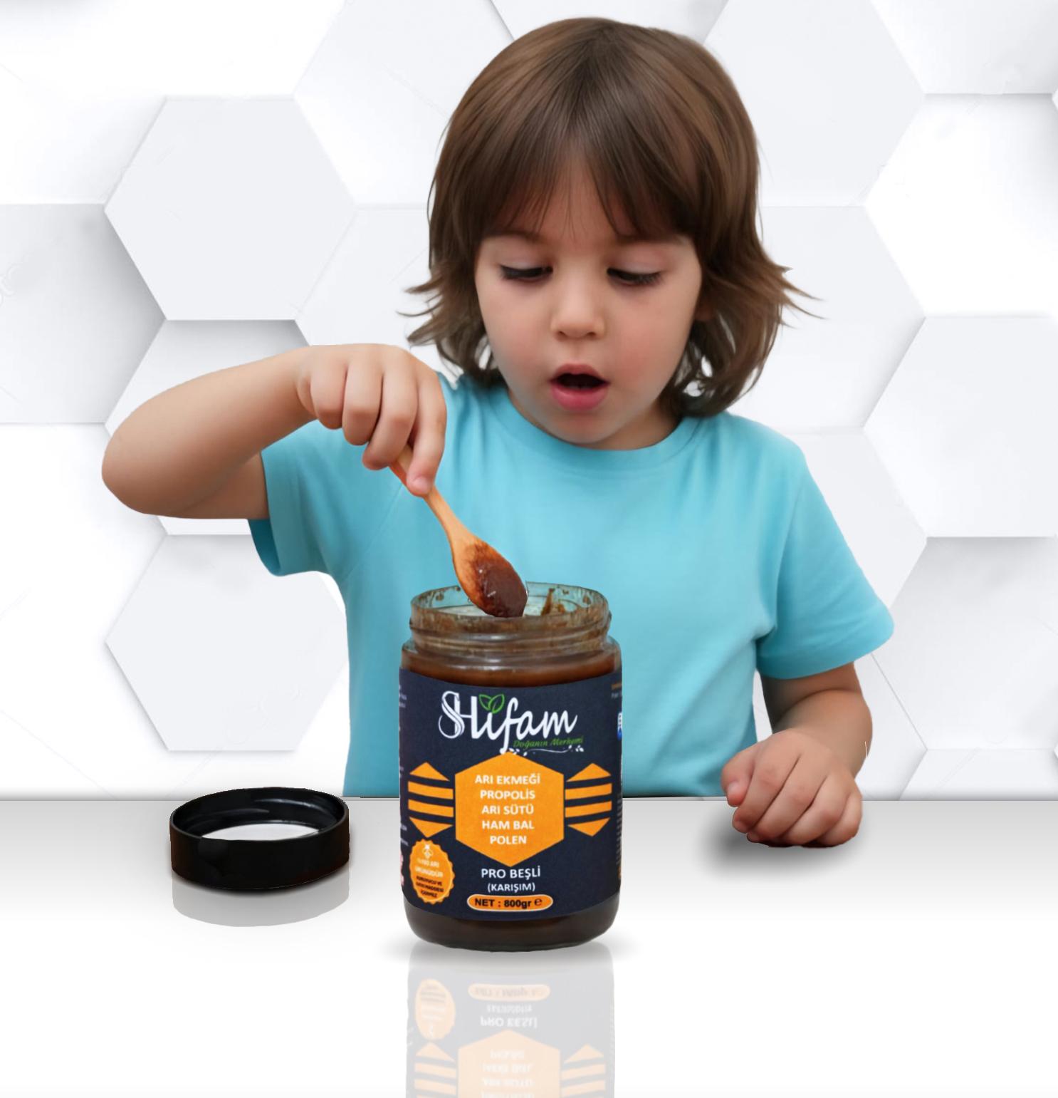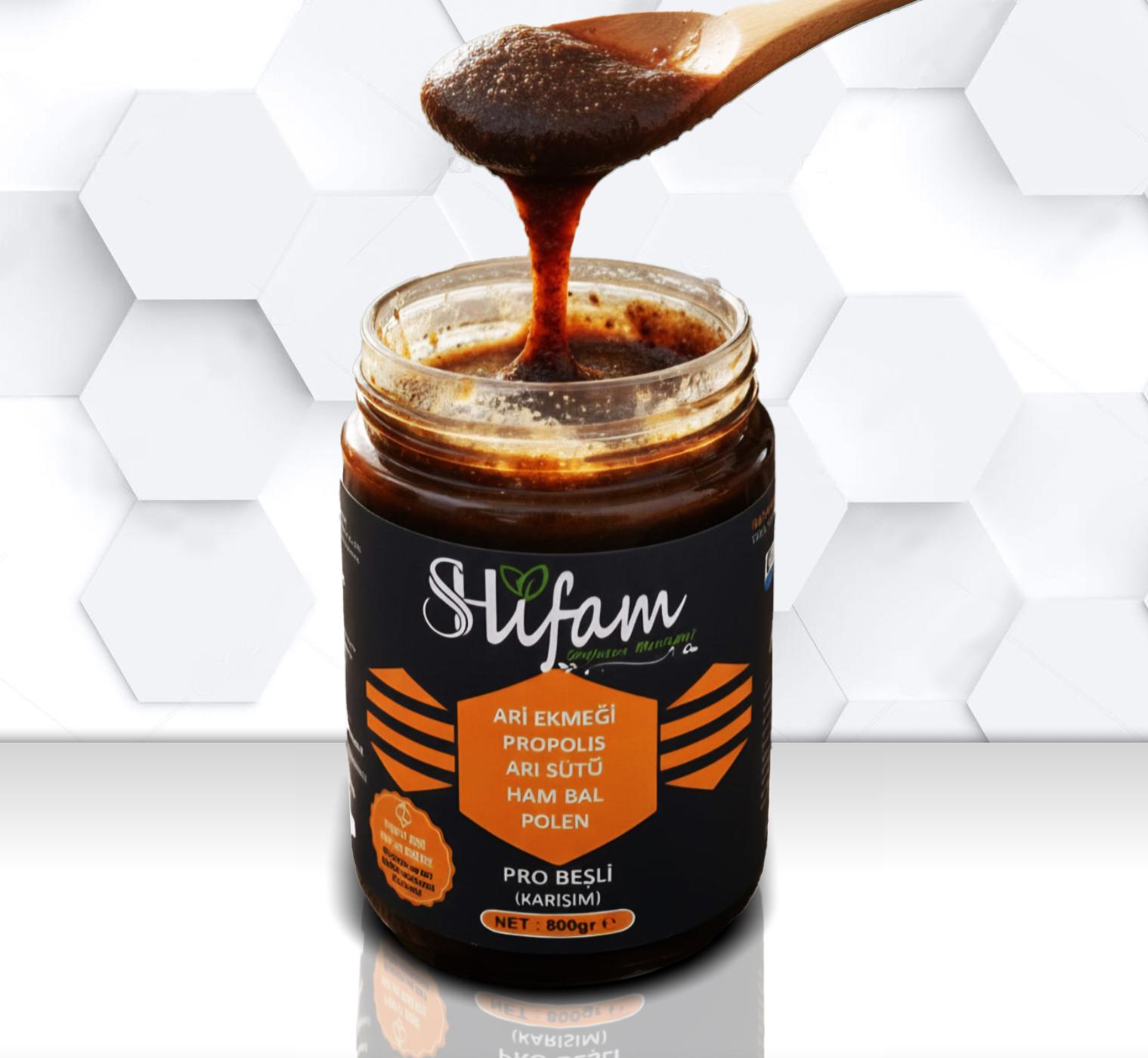BEŞLİ KARIŞIM (Bal, Propolis, Arı Sütü, Arı Ekmeği,Polen) KARIŞIM 800 GR